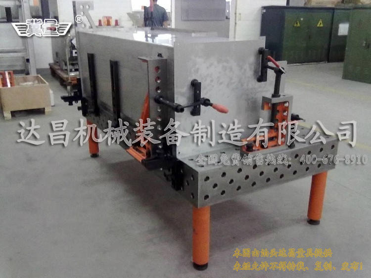三維柔性焊接基礎平臺說明:三維柔性焊接工作平臺采用帶孔格板形式、高精度、標準化、模塊化。在高精度的臺面的上表面和4個側面,每隔100mm均布φ28mm的圓孔(D28系列),或每隔50mm均布φ16mm的圓孔(D16系列),并以同樣的間隔劃有尺寸線,臺面邊緣可帶毫米刻度線,臺面上的圓孔可用于拼接各種功能的定位模塊和夾具。